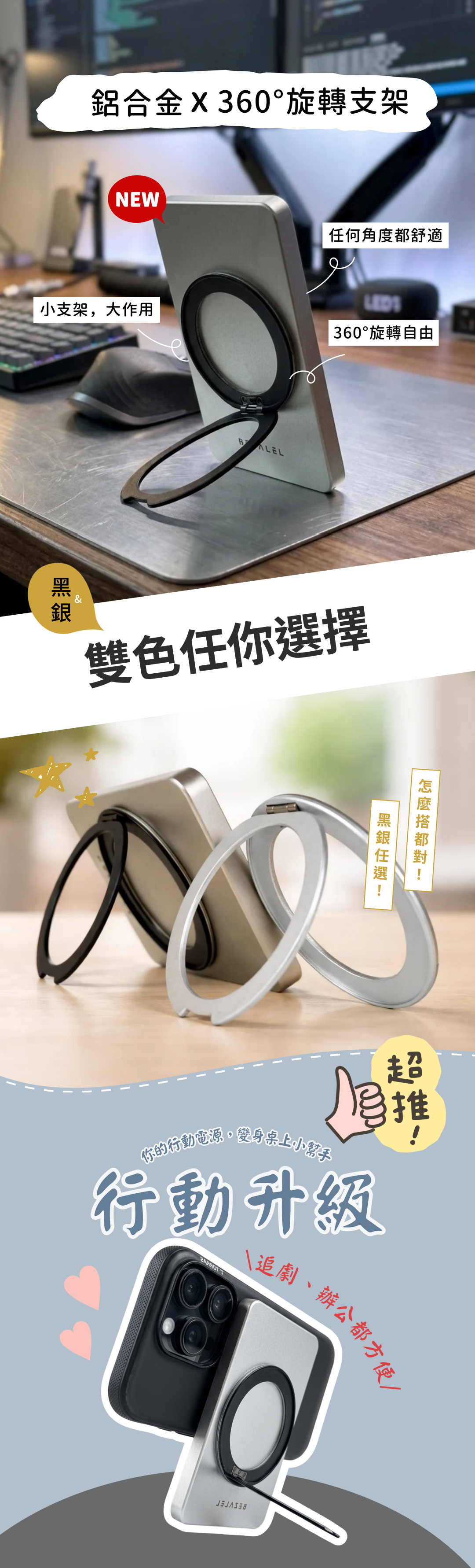- 360° 自由旋轉|角度隨你調整